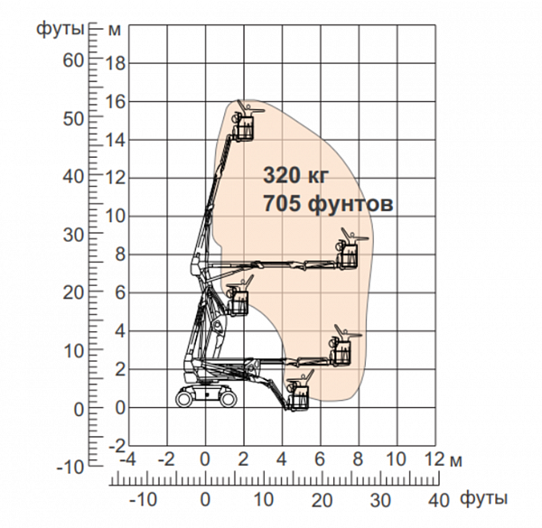 | Грузоподъемность на максимальном вылете (кг) | 320 |